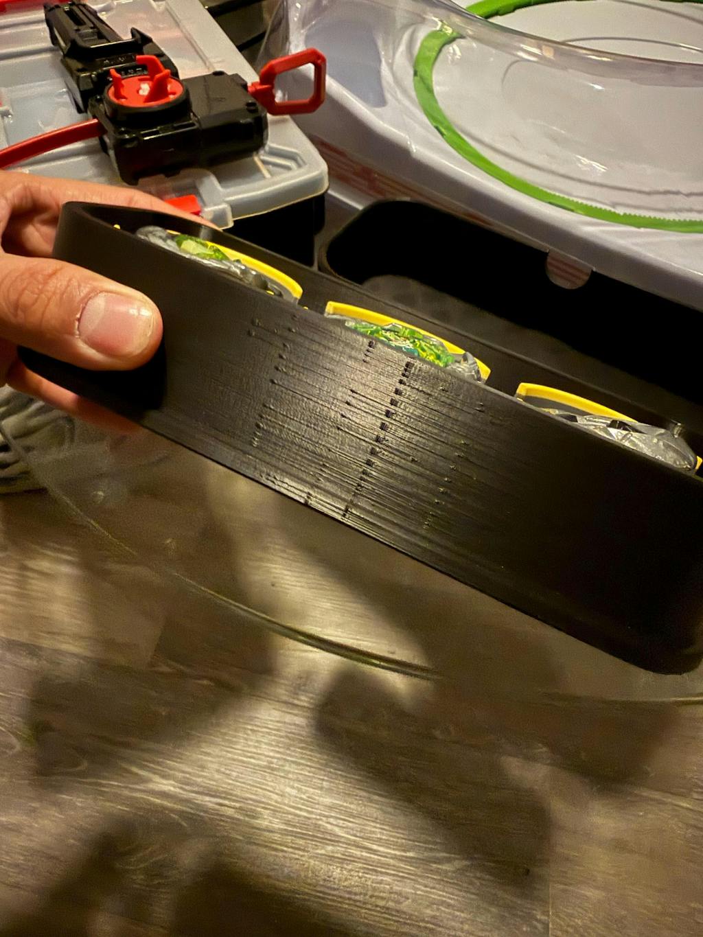 Color Options Note: The cups that hold the beys will always be the Dark Grey, Sky Blue, and Yellow color combo. Some color combos are difficult to read and are recommended to avoid. These include: Black/Purple, Black/Blue, Purple/Blue, and Purple/Green